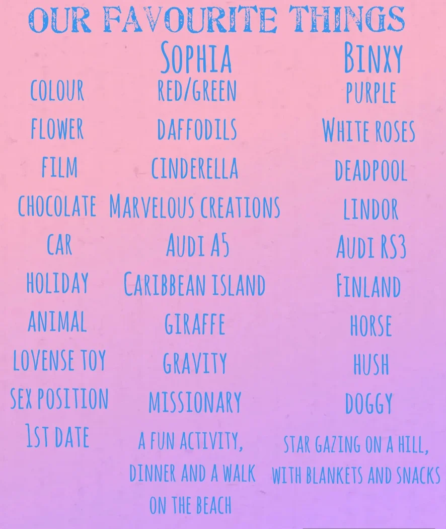 I started my cam journey very nervous and shy and I was a bit unsure of myself, but now a year later I have learned that I love to be adventurous and love the risk of getting caught. I've always had a curiosity about being with another woman and did start to explore this but I always wanted to take things further. Then I met Binxy and things took a turn and I found myself wanting to experience new and exciting things, I'm generally a more submissive person and I am looking forward to being dominated by a woman rather than a man most of all I'm looking forward to sharing this journey with all of you.